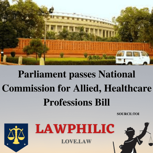 As per Times of India-“A bill to set up a Commission for regulating and prescribing uniform education standards for allied and healthcare professionals was approved by Parliament with Lok Sabha giving a nod to the legislation by a voice vote on Wednesday.