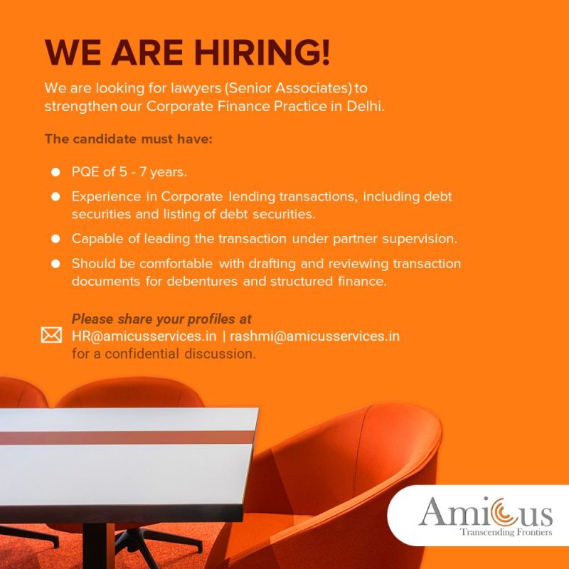 Amicus Services is hiring lawyers for the position of Senior Associates Published on June 18, 2021 by ANSHUMAN PATRA Related