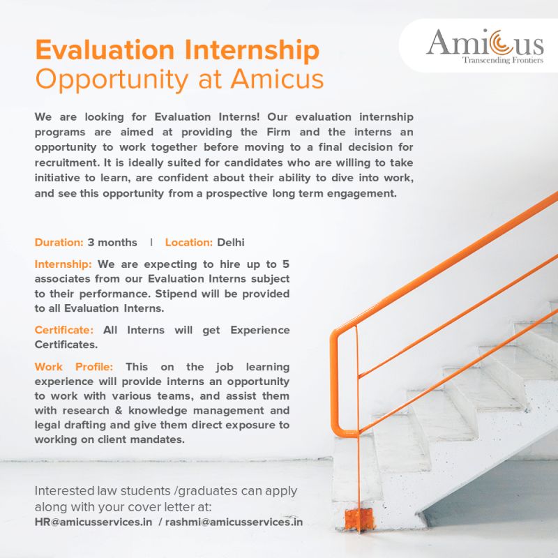 Amicus Services is looking for Evaluation Interns! All interested candidates may send their CVs with a cover letter to: HR@amicusservices.in/