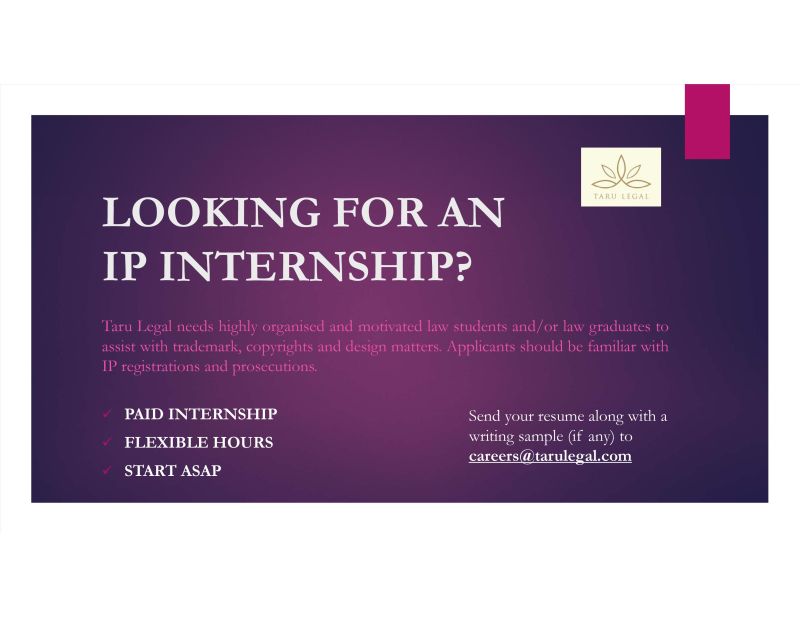 Taru Legal is looking for Interns! Published on June 24, 2021 by ANSHUMAN PATRA Taru Legal is looking for Interns! Taru Legal is inviting applications for paid IP Virtual internship. Last Date to Apply is June 25, 2021. Related